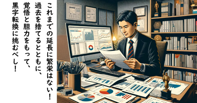 あなたは最高経営責任者として、これまでのやり方を捨てるとともに、覚悟と胆力をもって、黒字転換に挑んでください。