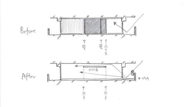 ↑マンションリノベのBEFORE & AFTERの光の様子を横から見て比べます