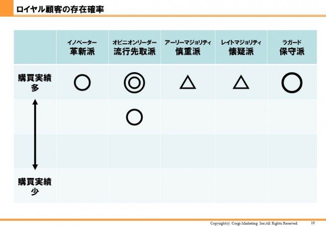 ちなみに、保守派と懐疑派はまわり人たちに流される存在なので、ロイヤル顧客としての定着は困難です。
