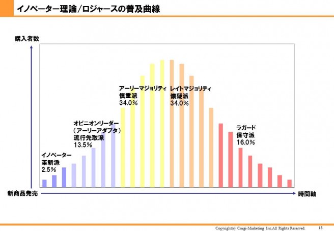 消費者はすべての商品カテゴリーに対して、革新派であったり、流行先取派になったり、慎重派・懐疑派を通すということはありません。