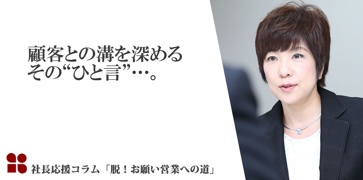 ということ。うまく会話(コミュニケーション)が成立しない相手と、この先もずっとこの関係が続くと思えば、それは商品力や提案力以前の問題であることは明らかです。それでは、先ほどの同行した営業マンは、目前の顧客に対しどのようなひと言を放ったのでしょうか?それは…