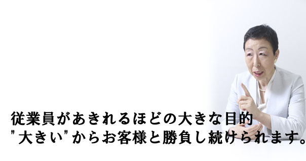 「オレは、これだけは誰にもまけたくない!この商品ならなんとしてもお客さんに『ウチが一番だ』と言ってもらえるように絶対ガンバル。ウチの従業員だってハンパナイよ。一生懸命やるもの、だから、ウチに任せてくれるお客さんが、多いわけだよ」