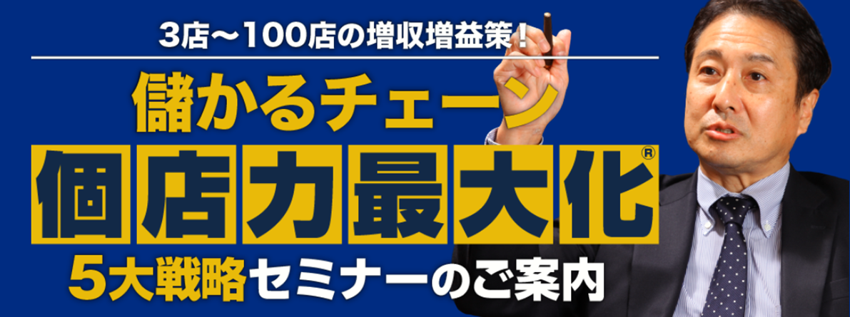 さらに、利益更新し続ける本部の指導力育成の具体ポイントにも触れた、貴重なセミナーです。事業を躍進させる、新たな戦略手法の一つとして、経営者ならびに事業部長のご参加を強くお薦めします。