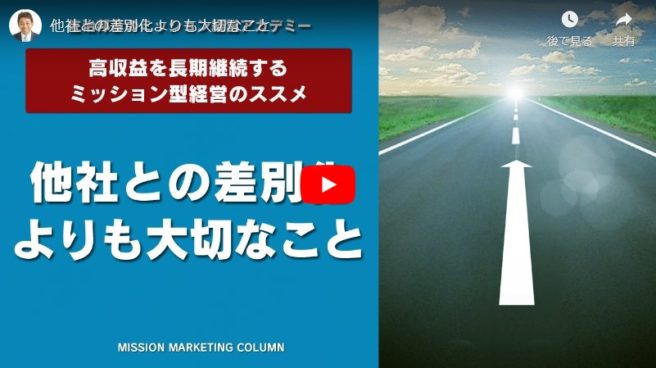 差別化ばかりに意識を持っていくとですね、競合と自社が何が違うのか、競合がやっていないことは何なのかというところに意識が傾いてしまいます。
