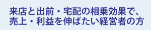 出前・宅配・デリバリーで、確実に売上・利益を上げたい経営者の方には、ご参加を強くお薦めします。