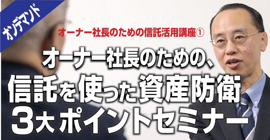 オンデマンドセミナー開催 随時お申込み受付中 【JOD8002】オーナー社⻑のための、信託を使った資産防衛3⼤ポイントオンデマンドセミナー