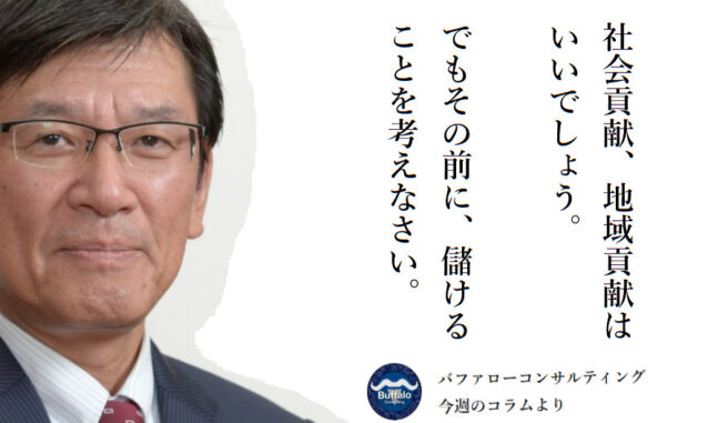 独立・起業した当時、または新事業を開始した時などは、だれもが「もっと儲けたい」と思ったに違いありません。しかし、それが現実のものになると、考えが昇華して社会貢献やら地域貢献ということになります。ここは大変重要なところです。