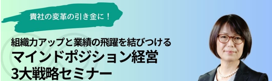 2023年9月11日(月)開催 13:00~16:00 即時受付対応オンライン参加対応予約受付中 組織力アップと業績の飛躍を結びつけるマインドポジション経営3大戦略セミナー