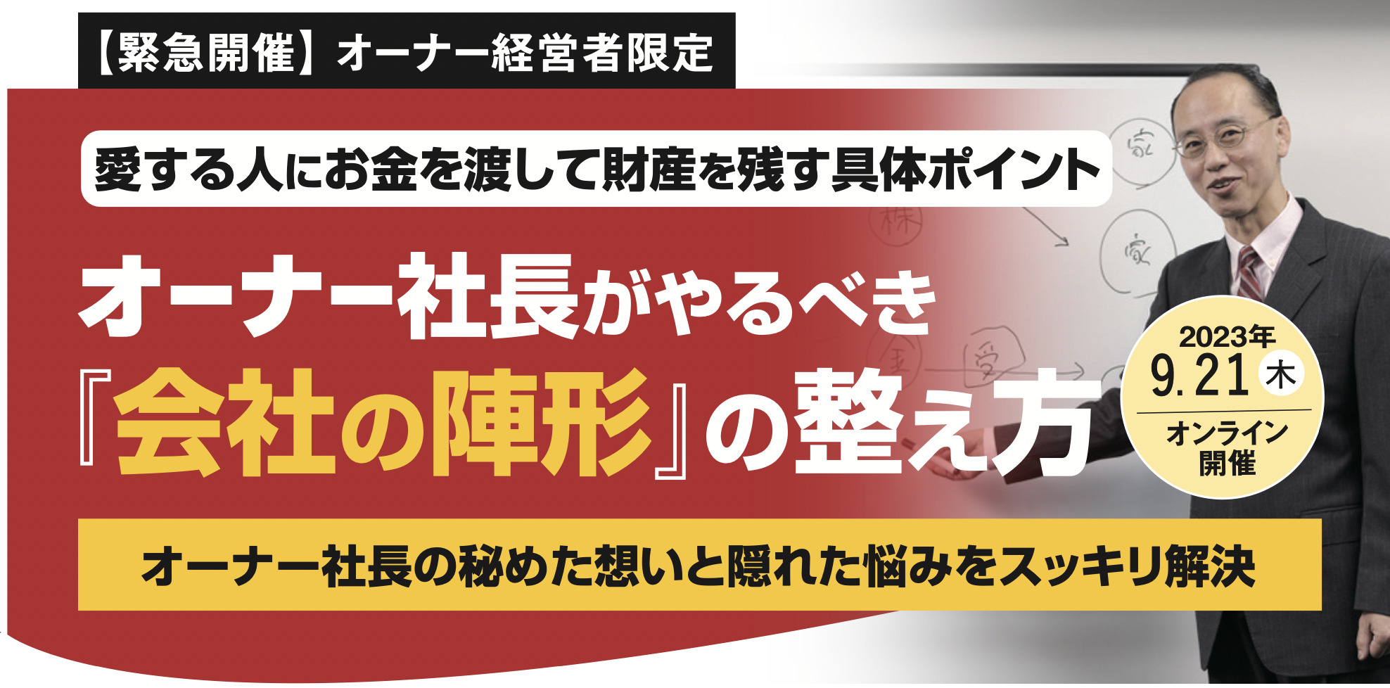 特に、ファミリー関係で悩み事があるオーナー社長にとって必ず参考になる情報が得られる貴重なチャンスです。