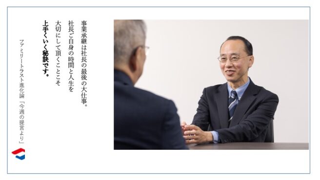 どのような形にしても、事業の承継はエネルギーと時間が必要です。とすれば、エネルギーも時間もあるうちに、手を打つ必要がありますね。経営者としてビジネス面での判断だけでなく、会社のオーナー、家族の大黒柱という立場もあります。