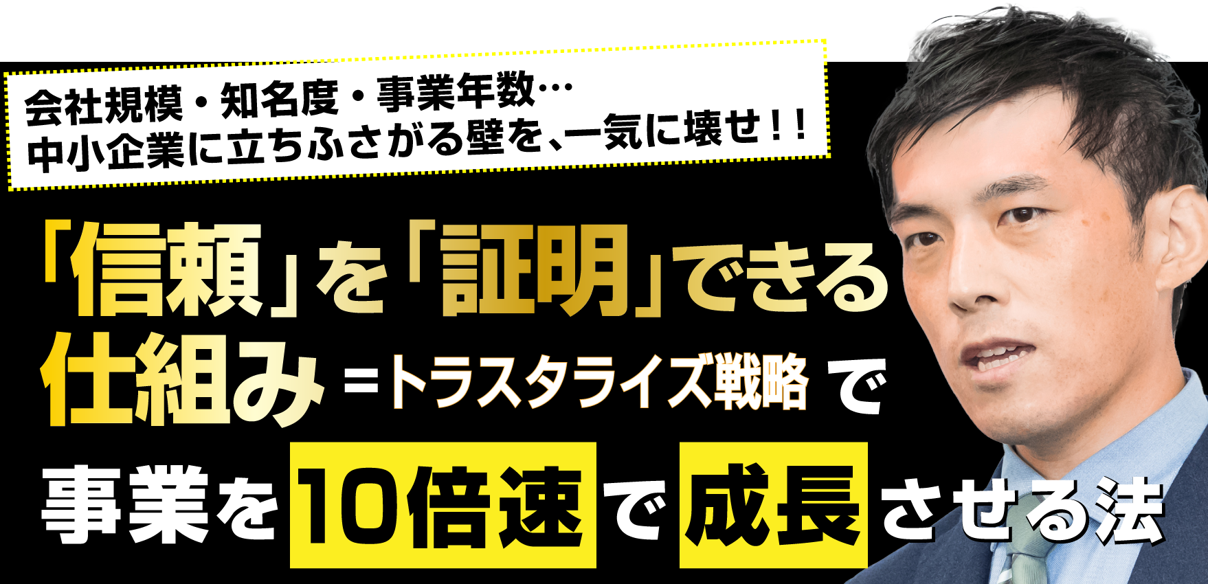 中小企業のための、「信頼」を「証明」できる仕組み=トラスタライズ戦略で、事業を10倍速で成長させる法2025年1月29日(水)開催 即時受付対応オンライン参加対応予約受付中