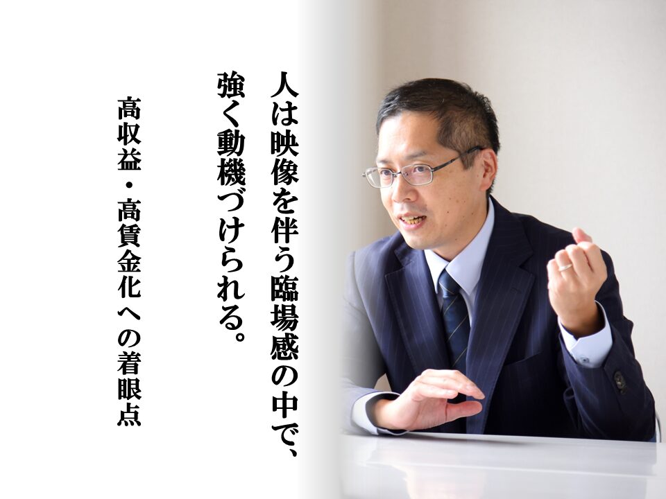 これが、自走型精鋭人材で組織を固めていくための根本にしてはじめのステップとなります。また、弊社が提唱している「社長の高付加価値思考を組織に連動させていく」一丁目一番地になります。