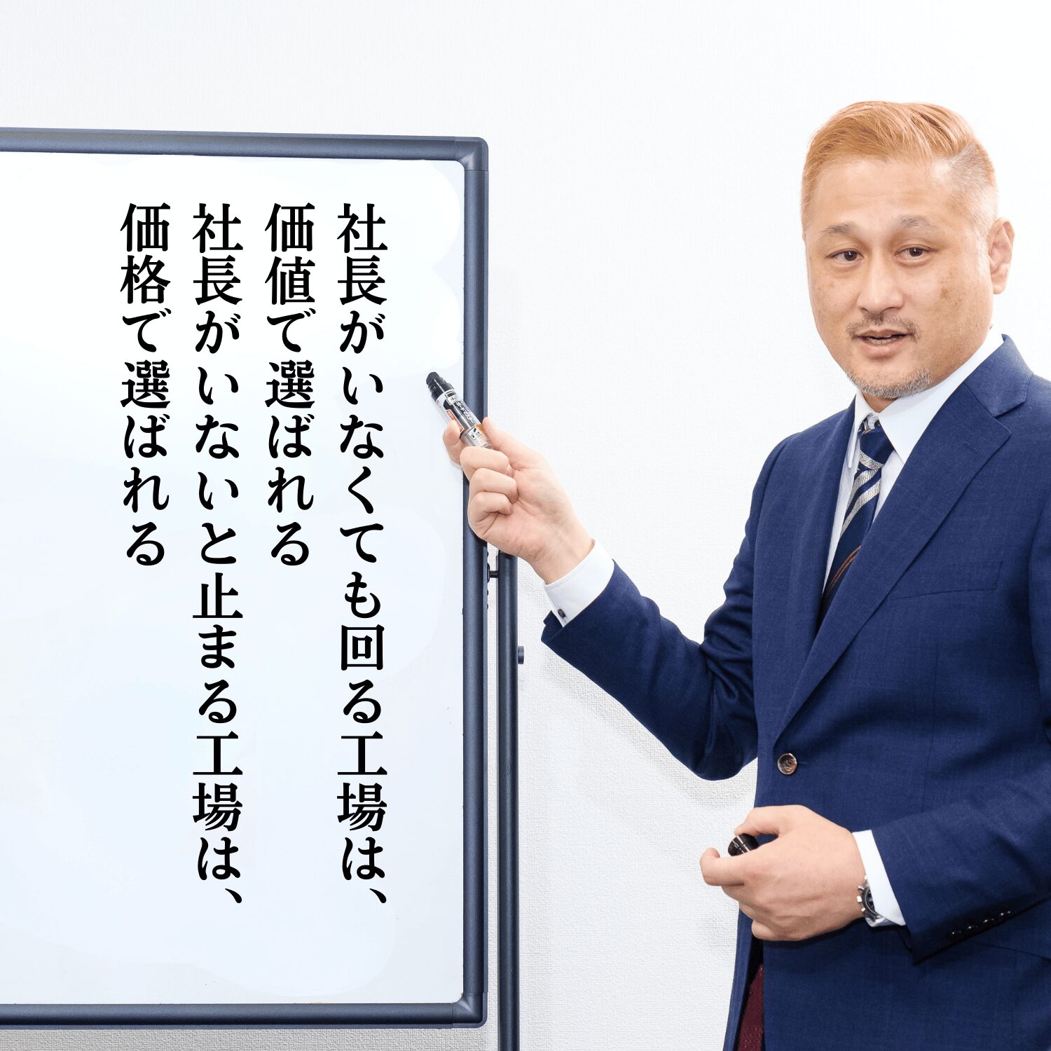 価格ではなく、価値で選ばれる工場、「高くても、あなたに頼みたい」と言われる工場への転換は社長の一存で決められます。どのような取り組み内容でかじを切るかも自由です。